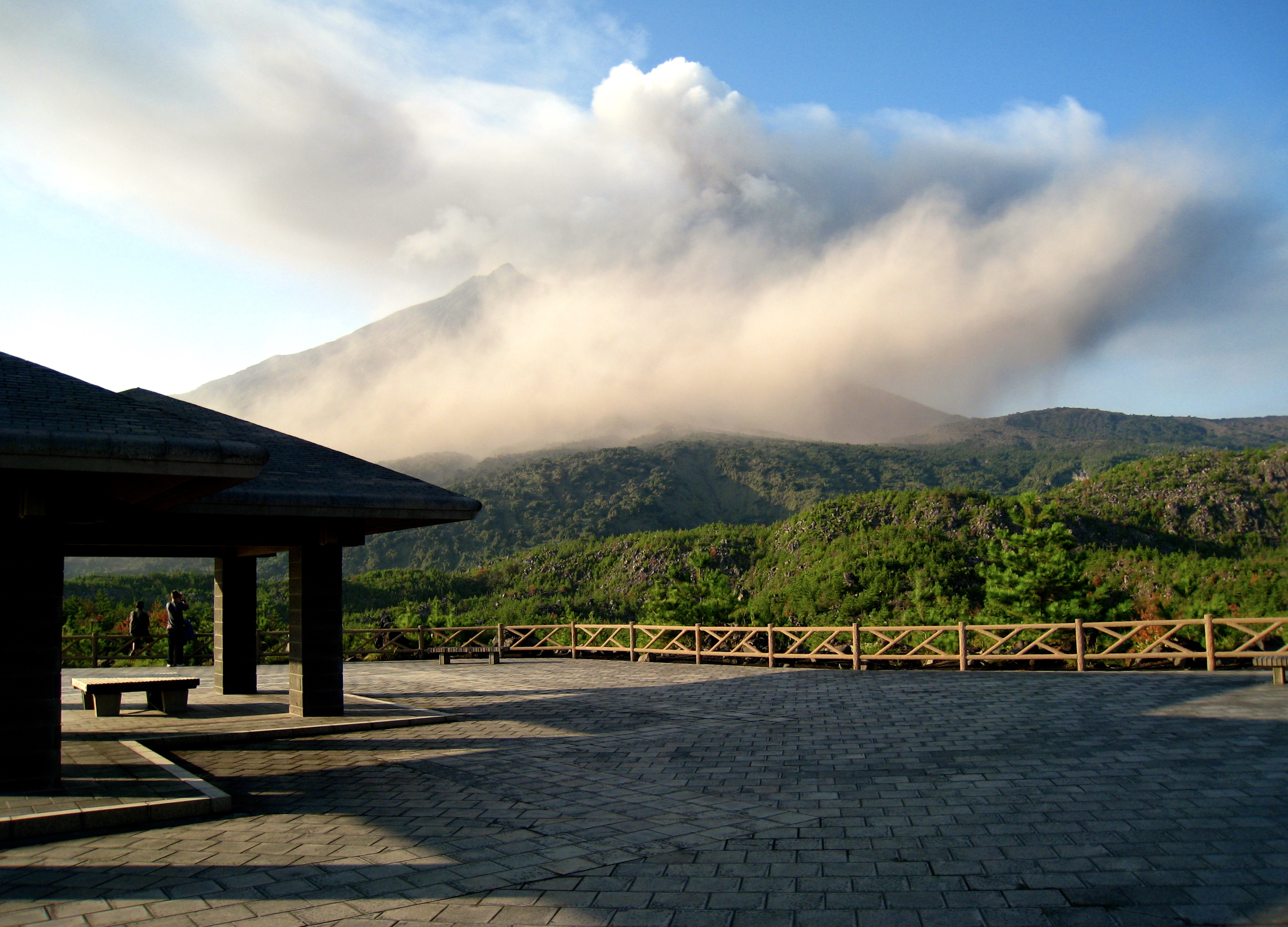 This observation point gives a spectacular view onto Sakurajima’s Southern craters. Here you are standing on an elevation of 75 meter that is actually the lava field formed by the famous 1914 eruption. I took the picture on 9 november 2009, one of the days the volcano became more active and in the late afternoon suddenly started to spew thick clouds of ashes.