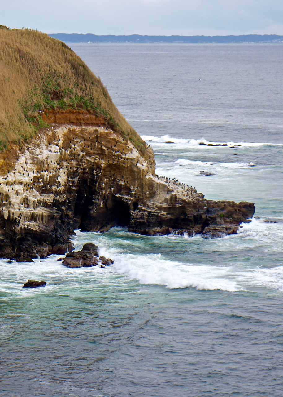 Along the hiking trail there is a good observation spot from where the bird sanctuary and habitat can be seen. The black birds contrast with the white cliffs facing the Pacific and are therefore easy to spot.